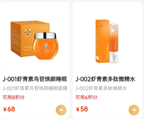 1、专区分类清晰——「虾青素食品/化妆品/健康食品/健康知识」等分栏直达;