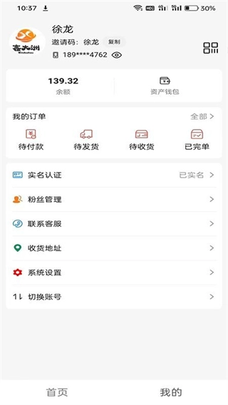 4. 点击页面下方的‘我的’,即可看到我的订单、实名认证、联系客服等功能。