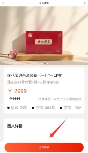 4、确认商品规格和价格后,点击页面右下角的立即购买按钮完成下单。