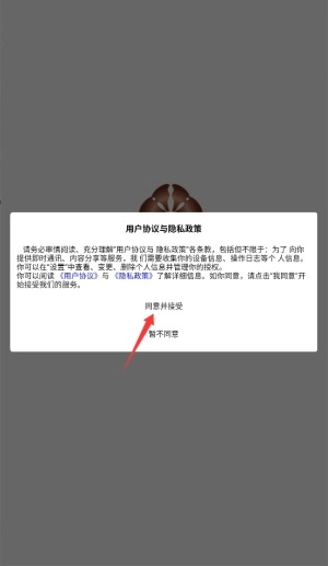 1首次启动应用程序时,你需要阅读并同意用户服务协议以及隐私条款,点击“确认”后即可进入主界面。