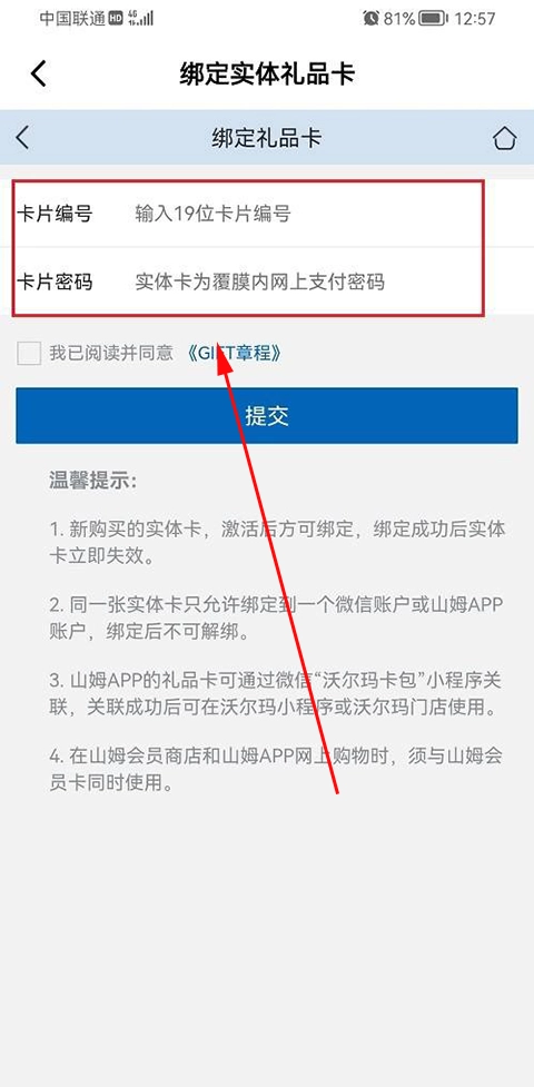 5、第五步进去之后,输入卡片信息,可以绑定礼品卡,根据需要使用