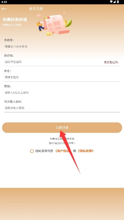 1在注册页面,依次输入手机号、验证码,接着输入姓名并设置密码,完成这些操作后,点击“立即注册”就能完成注册。