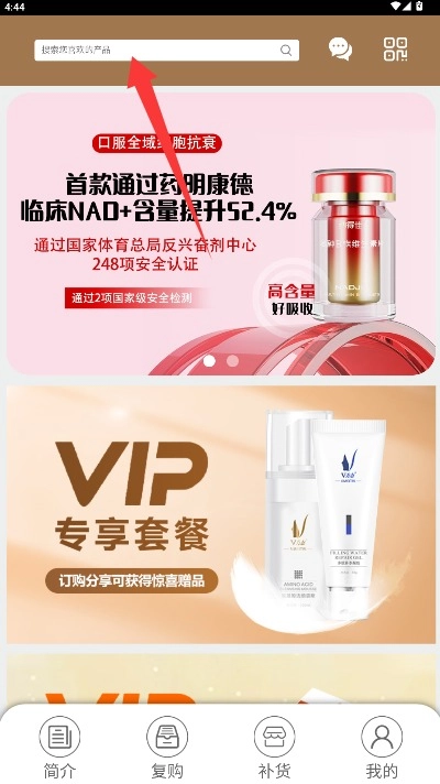 3、在首页商城顶部搜索栏输入商品名称或相关关键词,搜索需要的商品进行浏览。