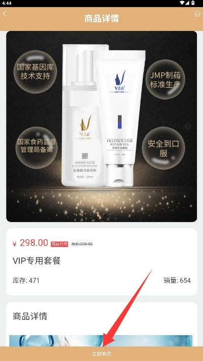 4、进入商品详细信息界面后,点击页面右下角立即购买按钮即可完成订购流程。