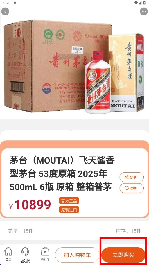 4、在商品详情页,点击【立即购买】按钮,即可快速下单心仪的商品。